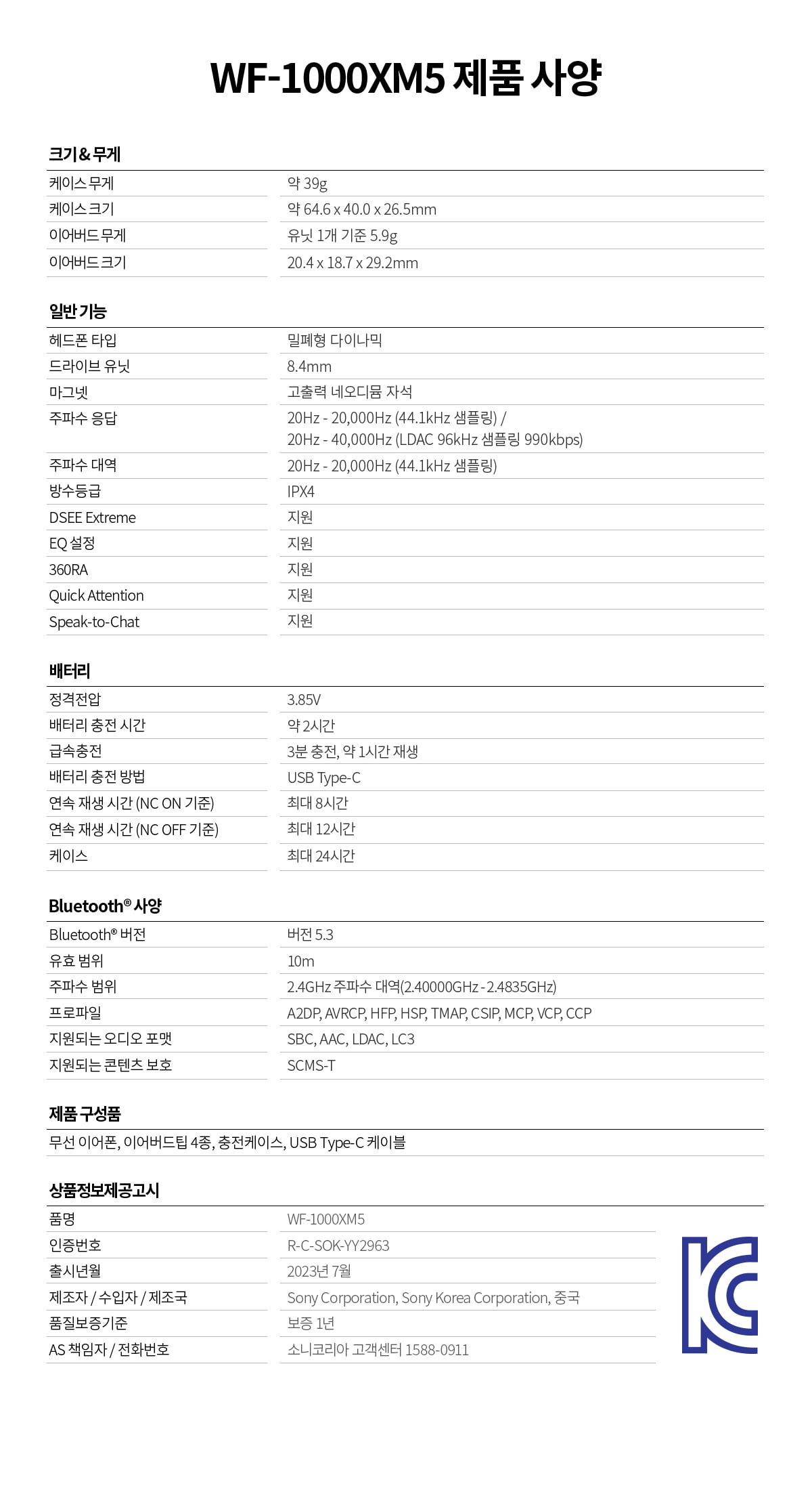 [소니] 노이즈 캔슬링 이어폰 WF-1000XM5 회원공개