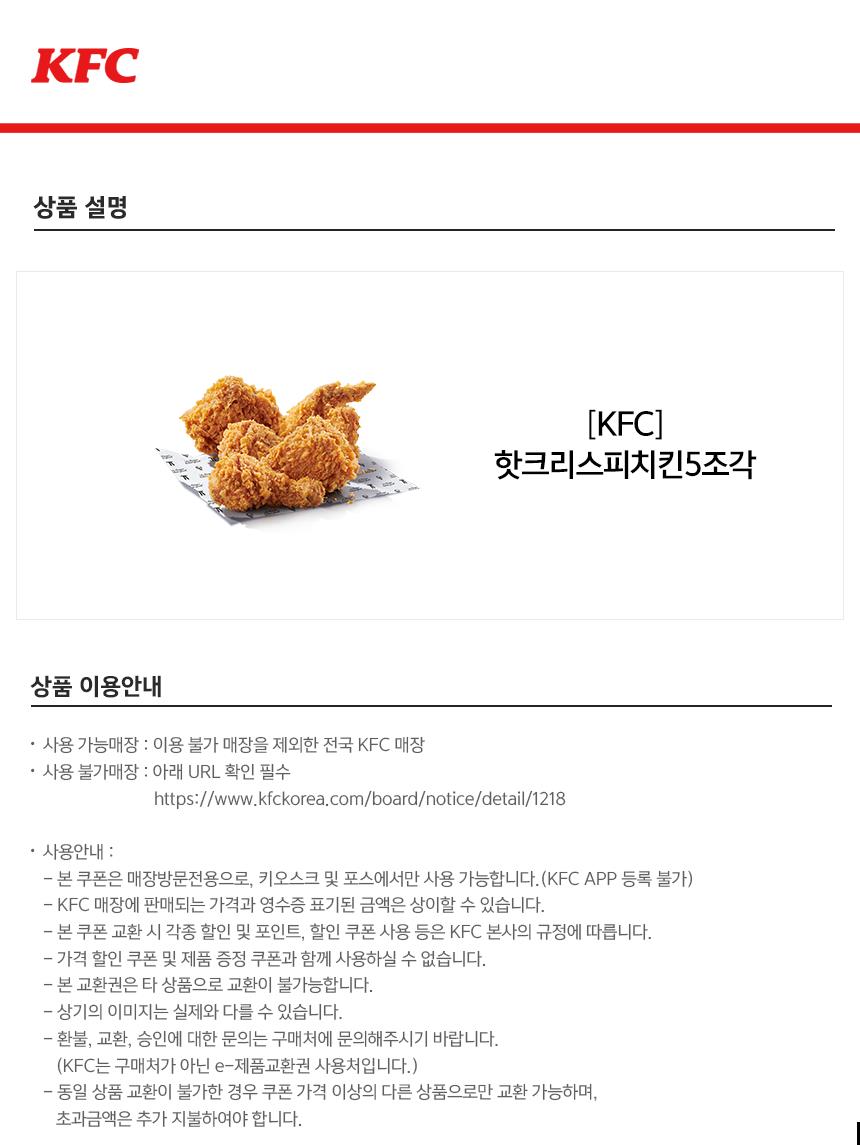 [KFC] 핫크리스피치킨5조각 회원공개
