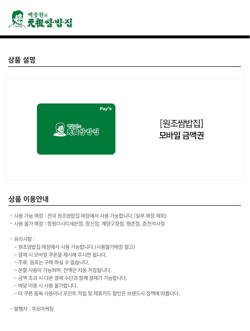 원조쌈밥집 모바일금액권 3만원권 회원공개