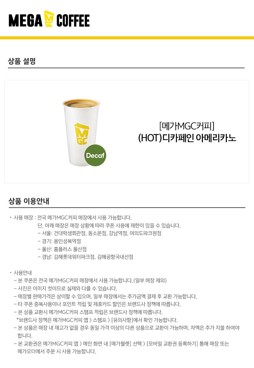 [메가MGC커피] (HOT)디카페인 아메리카노